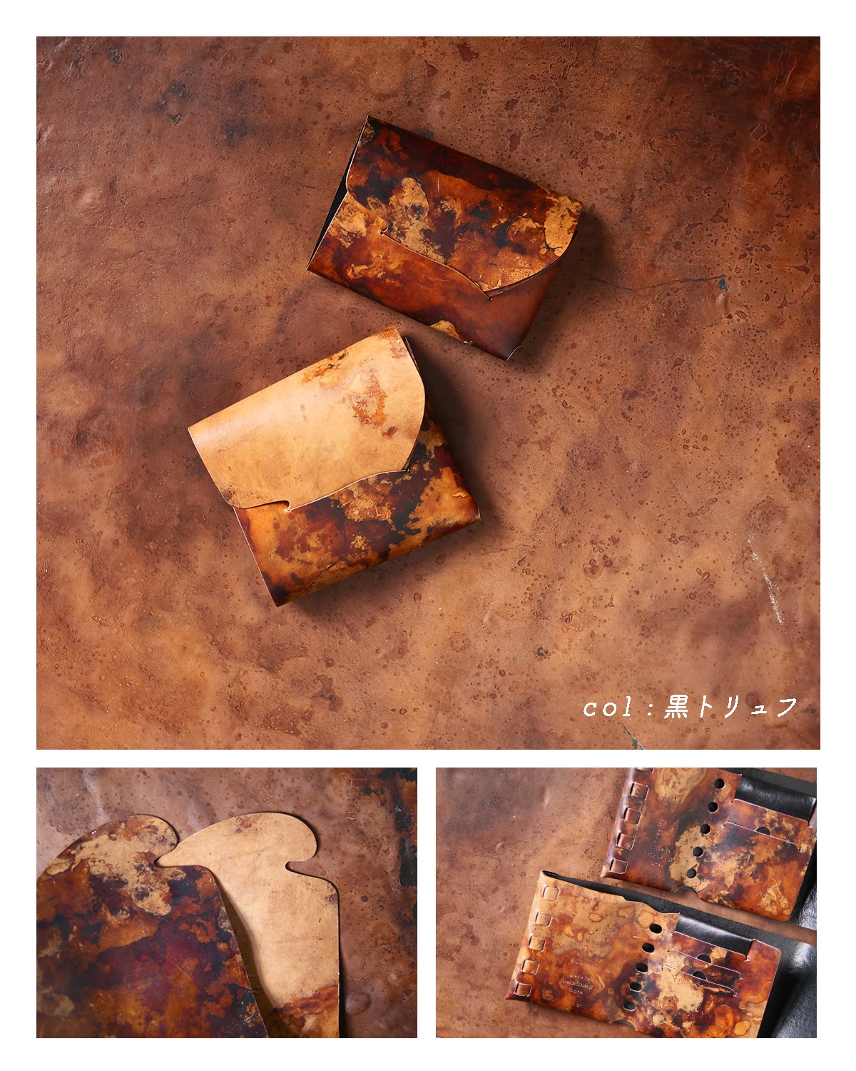 従来の革製品は動物が生きた証である小傷や皺などの「個体差」があります。それよリも、かなりはっきりとした個体差があります。有機的な(自然な)模様や色があり、逆に特徴があまりないものもあります。