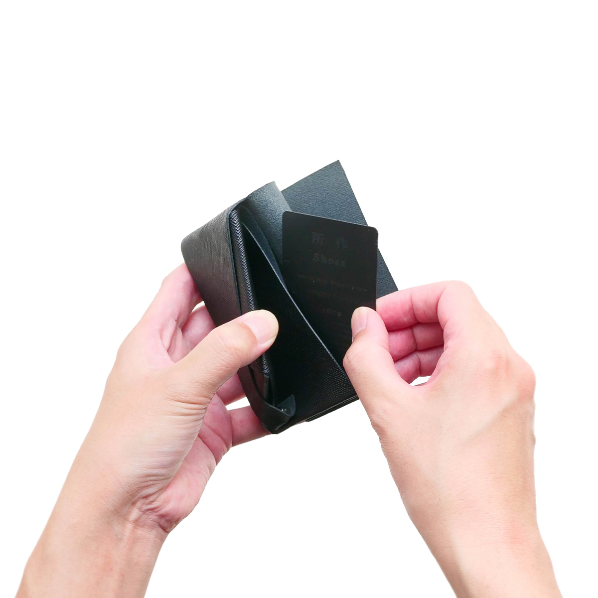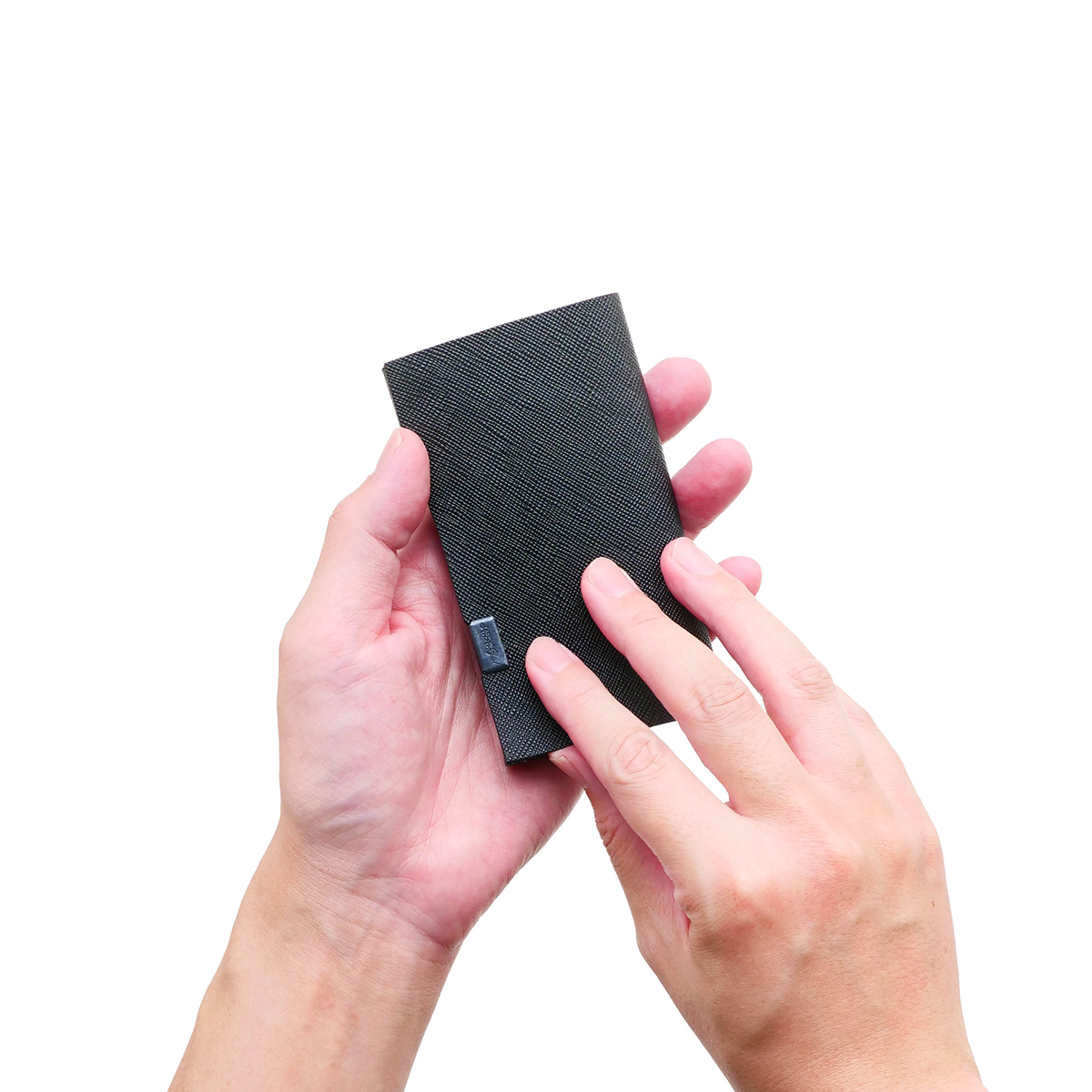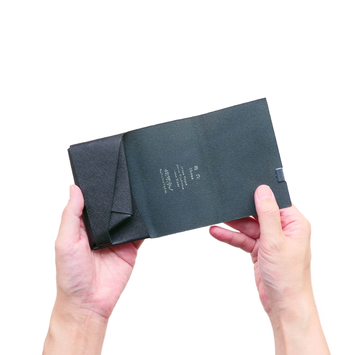 いつもの黒色にちょっとした柄と光沢のプラスアルファがあります。また、型押しを施しているため、傷がつきにくいという特徴があります。