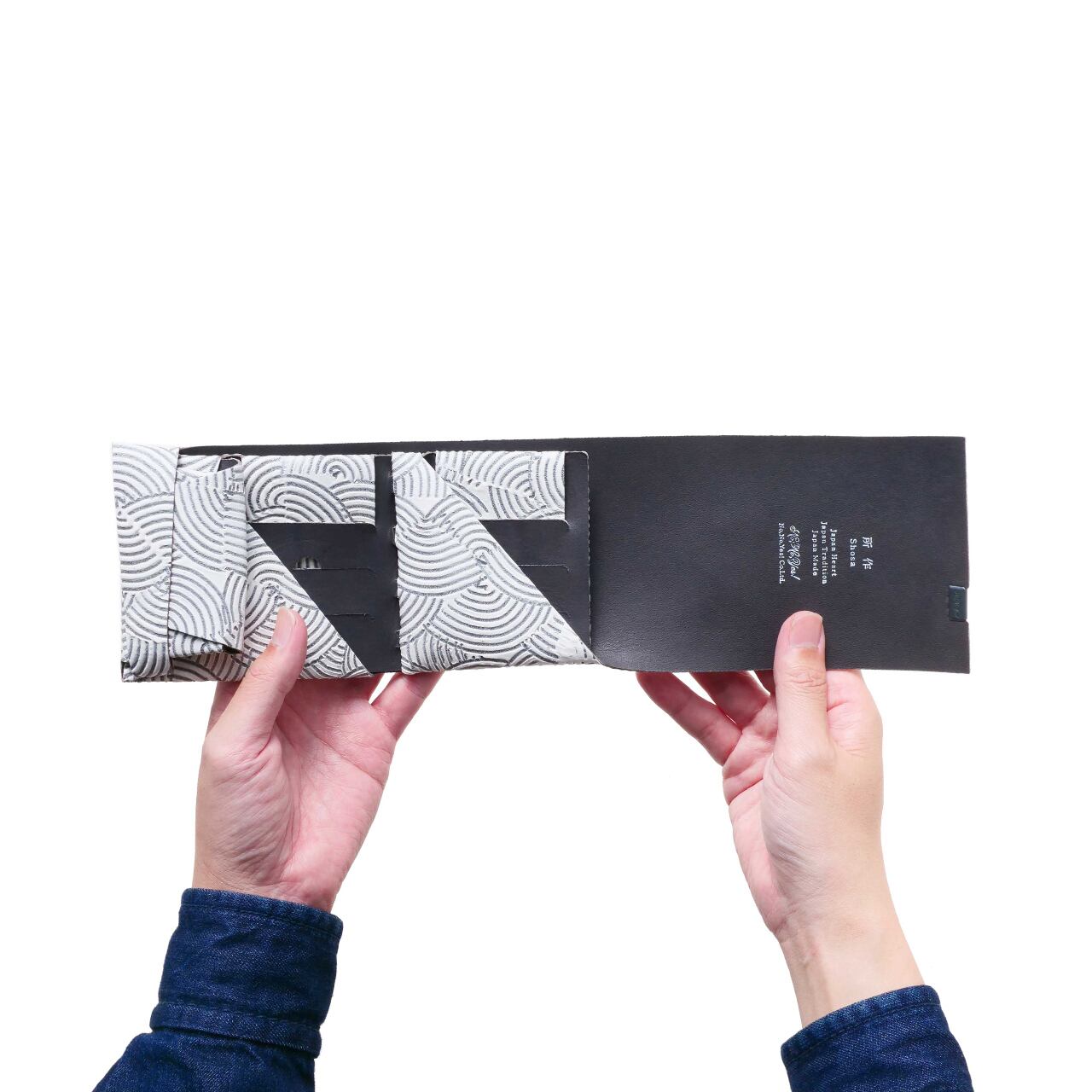 その一つ一つの波を手作業で描いているため、波同士の重なりや枠線の継ぎ目であったり、濃淡に違いがあります。均一な模様ではないこと、ご了承くださいませ。