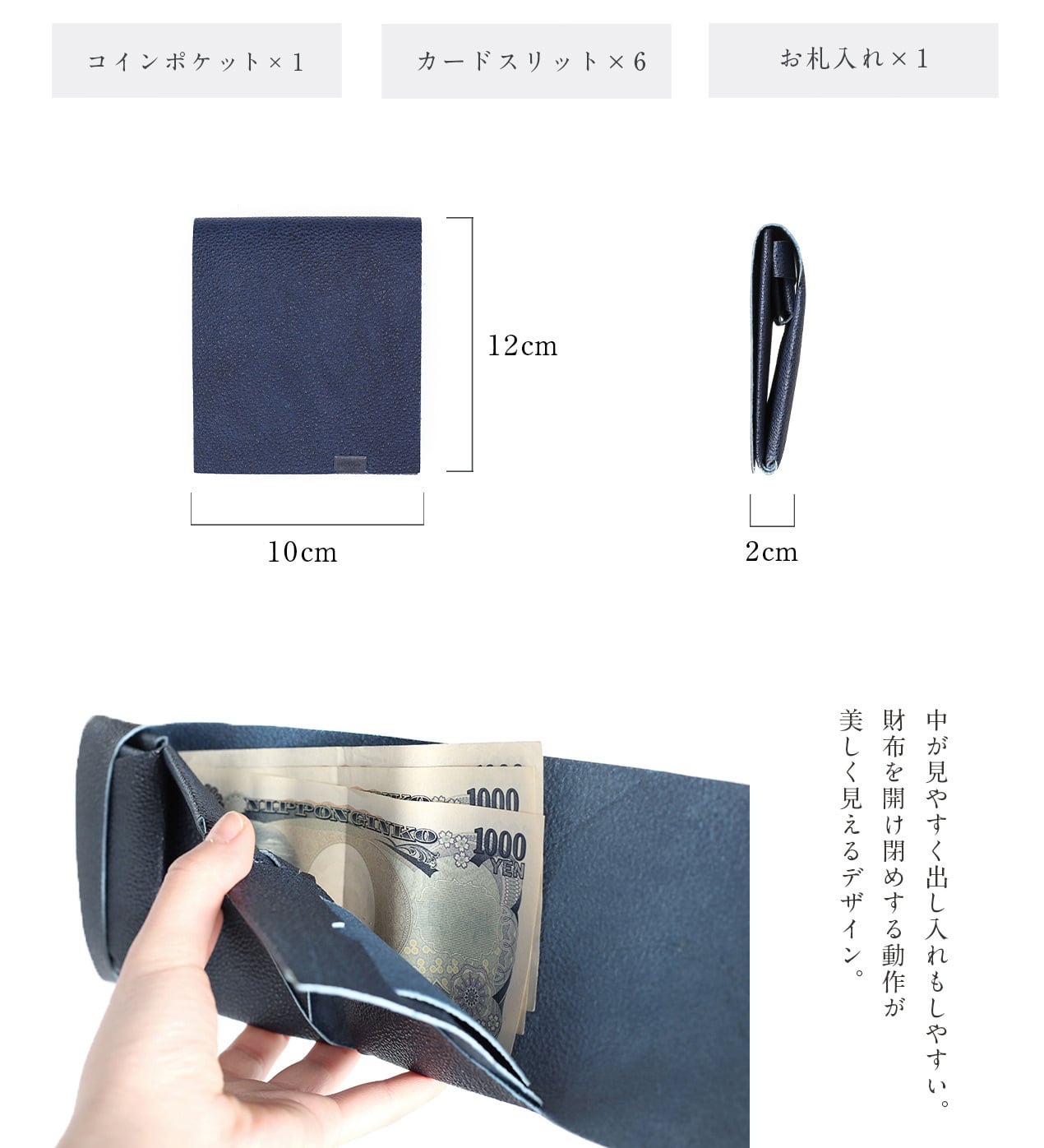 収 納:コインポケット×1/札入れ×1/カードスリット×6